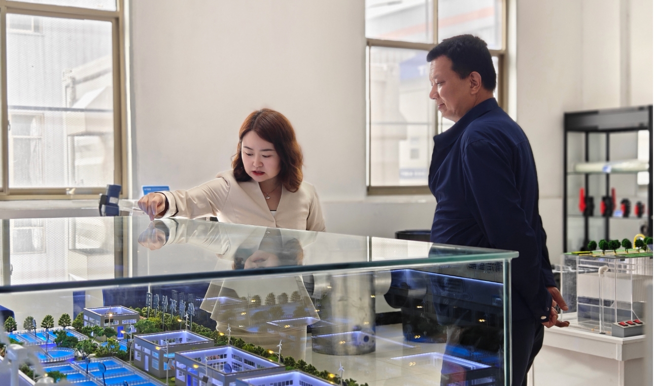 在張玫總裁的陪同下,考察團首先參觀了我司的現(xiàn)代化環(huán)保設備生產(chǎn)基地,深入了解了水處理設備生產(chǎn)線的運作流程以及設備展廳中的各類環(huán)保產(chǎn)品。在參觀過程中,張玫總裁向考察團詳細介紹了我司的發(fā)展歷程、當前發(fā)展狀況及未來的戰(zhàn)略規(guī)劃。在降低能耗、提高水處理效率以及實現(xiàn)資源最大化利用的污水處理、凈水處理與中水回收系統(tǒng)方面所取得的成果,得到了考察團的高度贊賞。